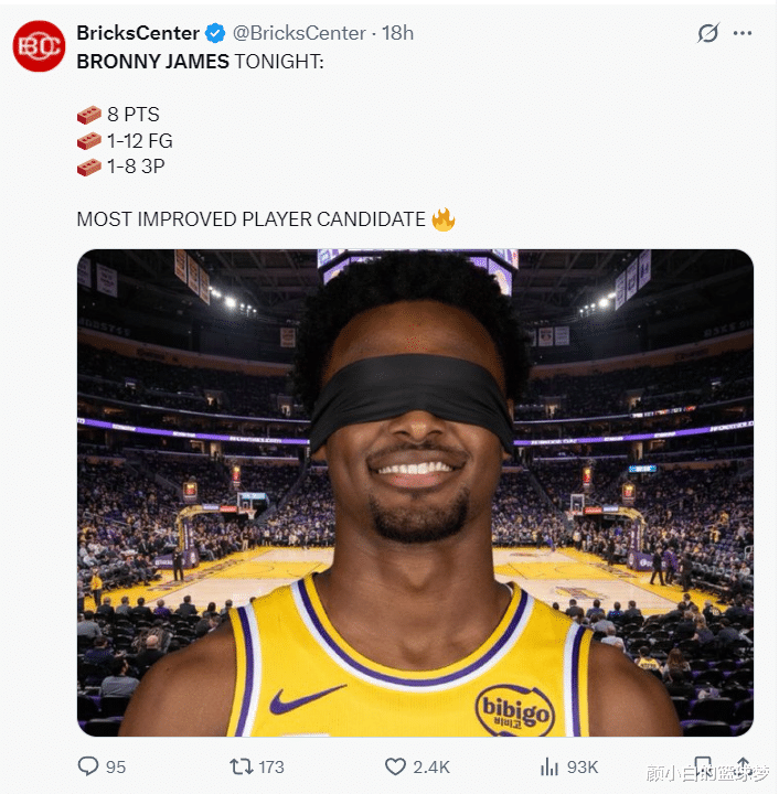 Brownie played well in the summer league, but his debut in the preseason was 24 minutes, 1 of 12 shots, 1 of 8 three-pointers, scored 8 points, 5 rebounds, 2 assists and 2 turnovers, with a shooting percentage of 8.3%, and a three-point shooting percentage of 12.5%. (Kneckett made 2 of 10, 1 of 7 three-pointers, 6 points, 6 rebounds and 2 mistakes) Brownie and Kneckett can be called the Lakers' new version of the Dragon and Phoenix Chicken.