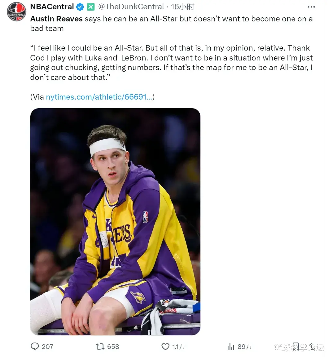 Lakers reporter Dan Woike wrote that Reeves will jump out of the contract next summer and try the free market. He seeks a big contract with an annual salary of $35 million or even an annual salary of $40 million, which means a new contract with a four-year, $140 million to $160 million. If the Lakers can't keep him, they may trade him this season.