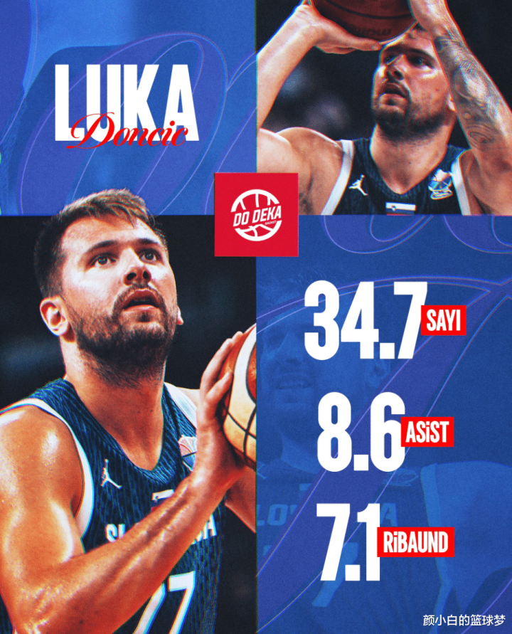 Luca Doncic ended the journey of this European Cup, averaging 33.3 minutes per game, scoring 34.7 points, 8.6 rebounds, 7.1 assists, 2.7 steals, 0.6 blocks, with a shooting percentage of 45.8%, and a three-point shooting percentage of 32.1%. Currently, scoring, assists, rebounds, steals, blocks, and efficiency are the first in Slovenia, among which scoring and efficiency are the first in the European Cup.