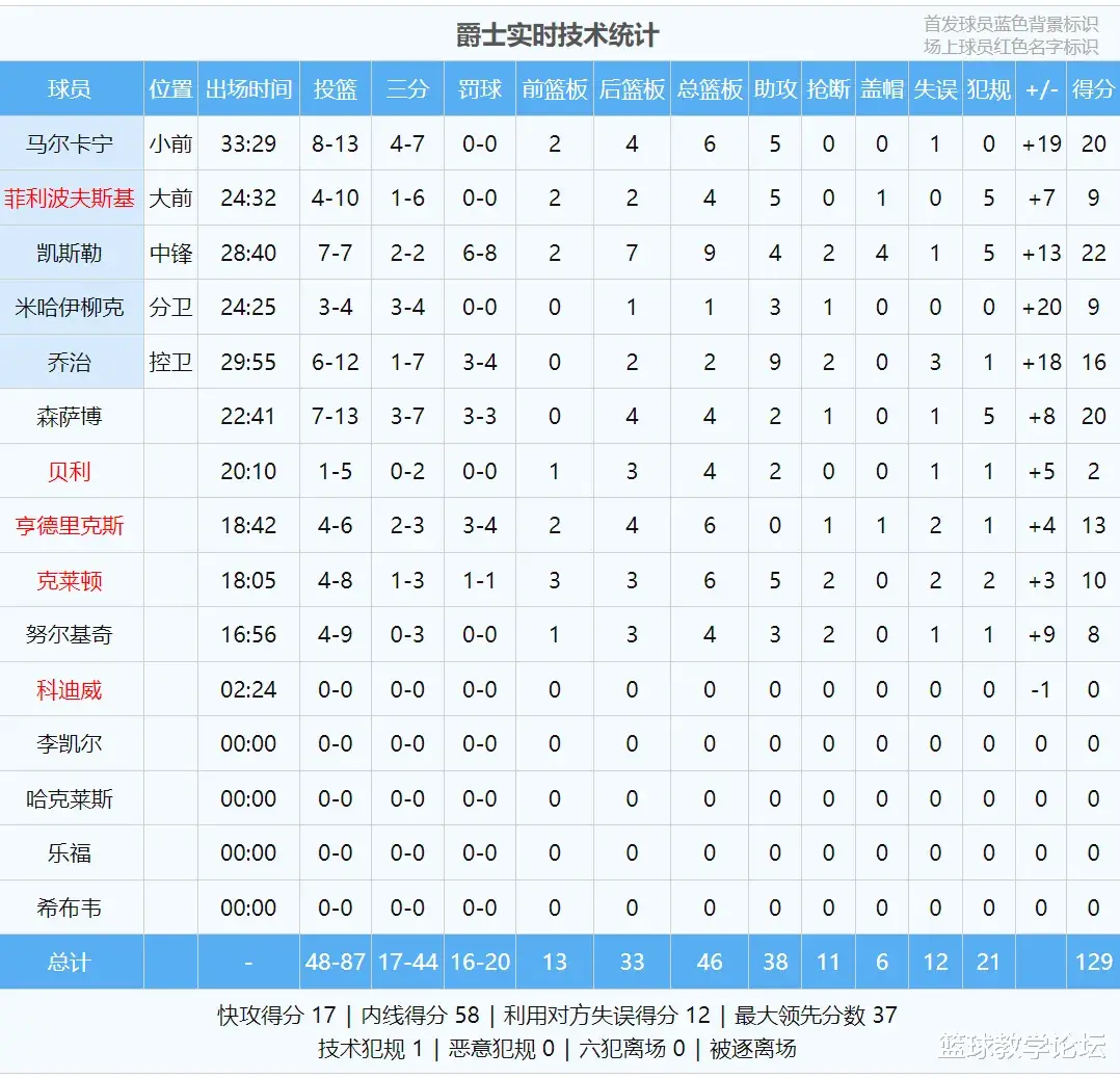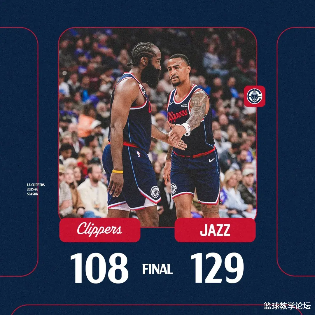 October 23, NBA regular season: The Jazz defeated the Clippers 129-108 at home. Score in the fourth quarter (Jazz in front): 43-19, 35-28, 30-33, 21-28. The Jazz led by up to 37 points, and the entire second half was garbage time. Last season, the Jazz were last in the Western Conference with 17 wins and 65 losses, and they defeated the Clippers in the opening game of this season.