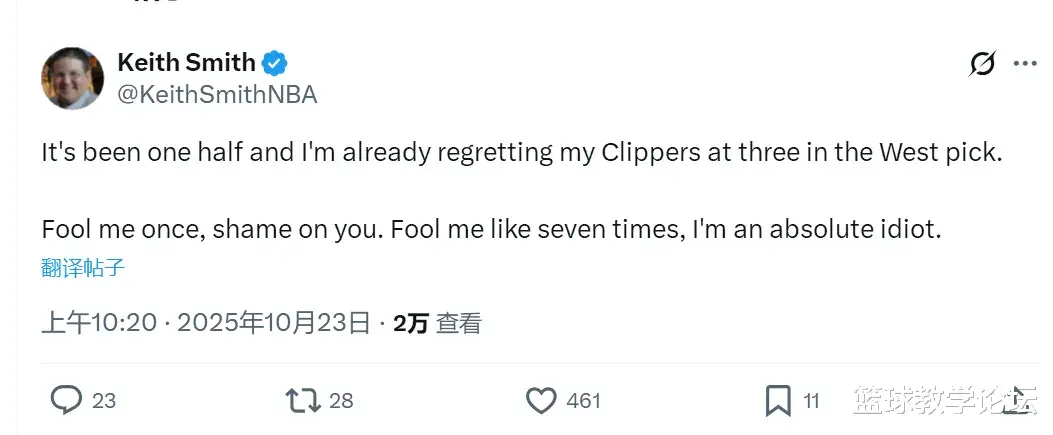 Clippers coach Tyronn Lue said after the game: "We played like shit, and I am responsible for losing!" NBA reporter Keith Smith tweeted during halftime to comment: "You lied to me once, shame on you; lied to me seven times, I'm stupid! I predicted the Clippers would be ranked third in the Western Conference before, but now I'm a complete fool!"
