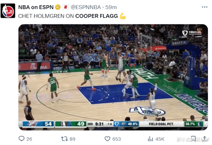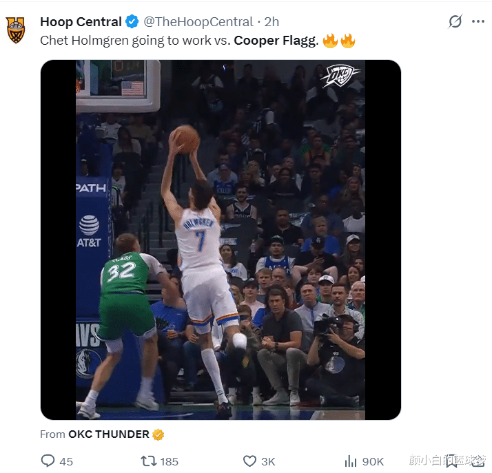 Flagg wanted to regain face. He wanted to carry Holmgren for a layup, but Holmgren directly hit the goal with both hands. Holmgren defeated Flagg in this campaign. In 32 minutes of this campaign, Chet made 6 of 10 + 2 of 5 three-pointers, which was very efficient.
