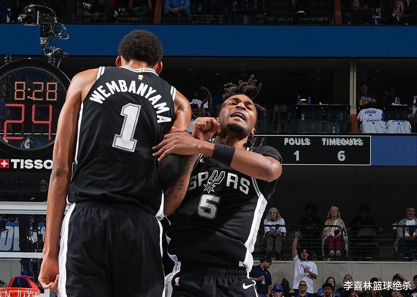 "Dunk! Wenban!" Castle shouted while dribbling the ball forward. This is a scene from the second quarter of the Spurs' season-opening away win over the Mavericks. Almost at the same time that Castle shouted these words, Vunbanyama used his right arm to push away the chasing Dwight Powell, rushed to the basket, and completed the final acceleration. A few steps past the center circle mark, Castle threw a lob, and Vunbanyama caught the ball in the air for a backhand two-handed dunk. Vunbanyama and Castle excitedly bumped shoulders in celebration. The Spurs players on the bench made a noise and wildly celebrated this amazing dunk. The poster and the subsequent celebration quickly went viral on the Internet, showing the two Rookie of the Year winners of the past two years engaging in a tacit collaboration and displaying amazing talent.