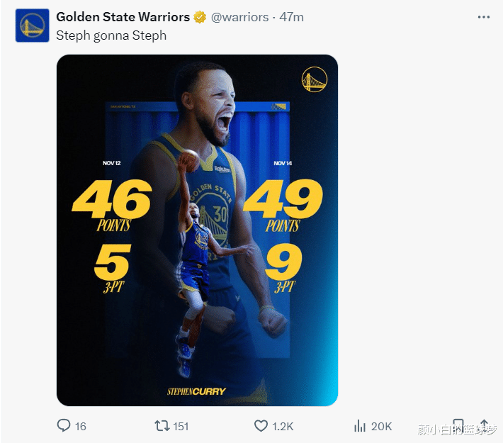 The Warriors officially revealed that Curry scored 95 points! He set a record of 13 and was praised as GOAT. Kerr bluntly said that he continues to bring surprises.