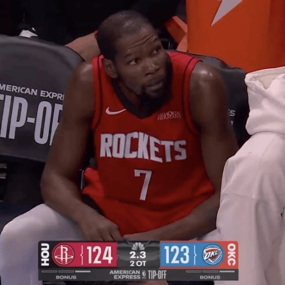 Hupu, October 23 News Yesterday’s NBA regular season, the Rockets lost to the Thunder 124-125 after double overtime.