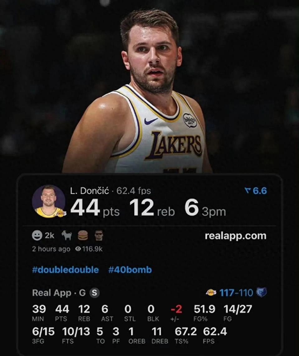 Who can stop Doncic? In the first game back, he made 14 of 27 shots and scored 44 points, 12 rebounds and 6 assists, leading the Lakers to a 117-112 victory over the Grizzlies. In the previous two games, he scored 43 points, 12 rebounds and 9 assists, and 49 points, 11 rebounds and 8 assists. The Purple and Gold Army temporarily ranked fifth in the Western Conference with 4 wins and 2 losses.