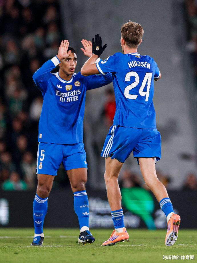 Unexpectedly, he lost a goal first. Alonso immediately replaced 4 people in a row. Vinicius, Camavinga, Valverde and Gonzalo Garcia all came on as substitutes. After regaining the initiative and continuously suppressing it, finally in the 78th minute, Arnold took a corner kick, Bellingham crossed in the middle, and Huizen followed up with a kick to equalize the score, 1:1! This is Huizen's first La Liga goal since joining Real Madrid.
