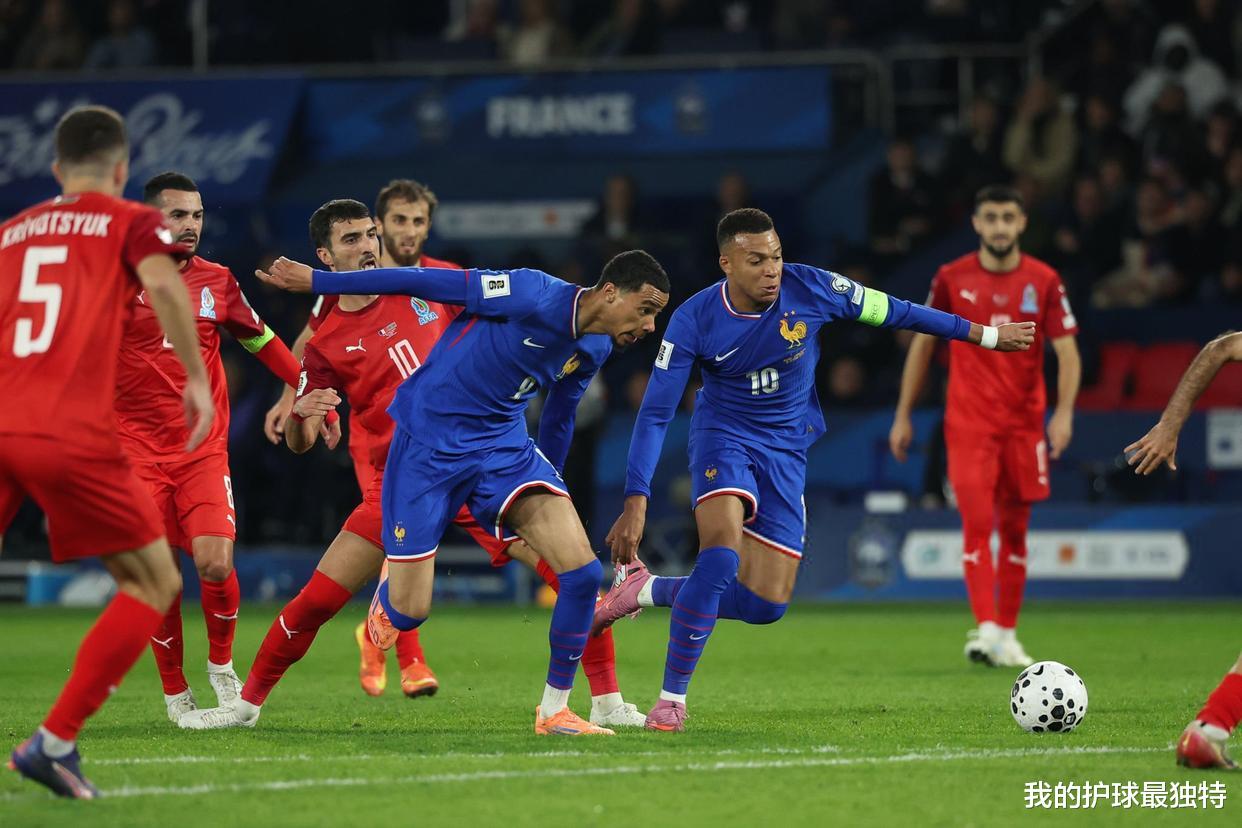 France ranks second in FIFA, ranking first with 2 wins in 2 games, while Azerbaijan is ranked 124th, with 1 draw and 1 loss in the first two rounds, temporarily ranking last in the group. France still used all their main players in this game, with Mbappe leading the 442 formation, Olise, Koeman and Ekitic playing one after another, with Rabiot and Thuram sitting in the midfield.