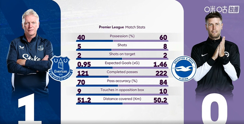 In the end, Everton defeated the Seagulls 2-0 at home. In the whole game, Brighton missed many good opportunities in a row, including two mid-frames and a penalty kick, and suffered two rounds of defeat in the start of the new season.