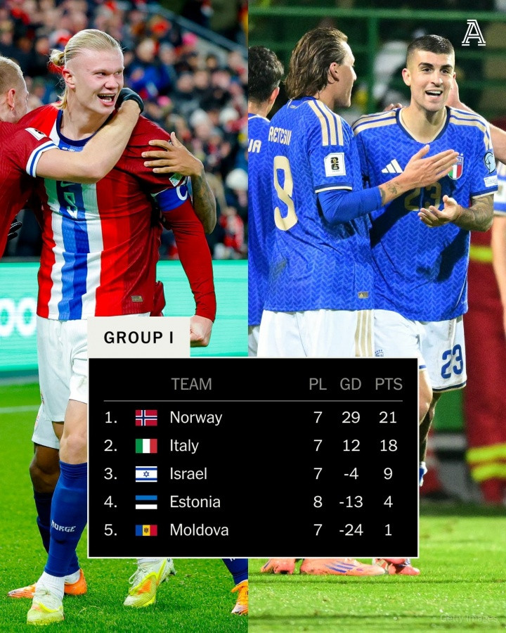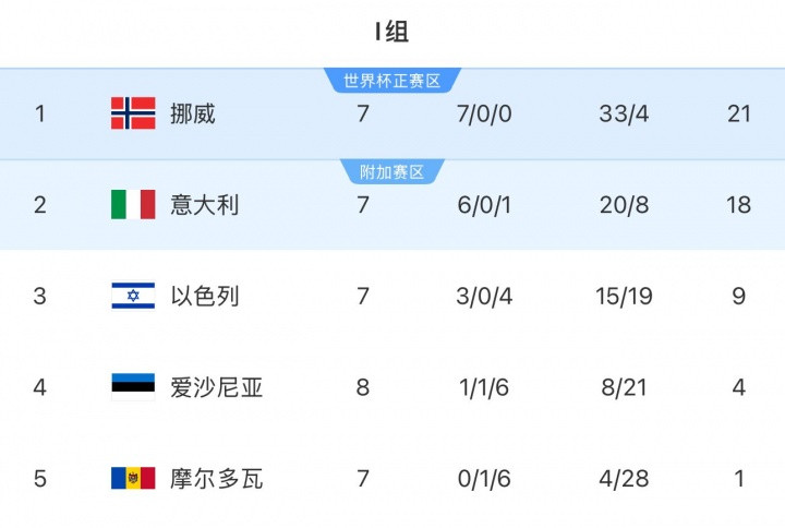 In the 9th round of Group I of the European Group Stage of the World Cup preliminaries on November 14, Norway defeated Estonia 4-1 at home and basically locked in a direct quota. Italy defeated Moldova 2-0 away from home, but their chances of qualifying are slim.