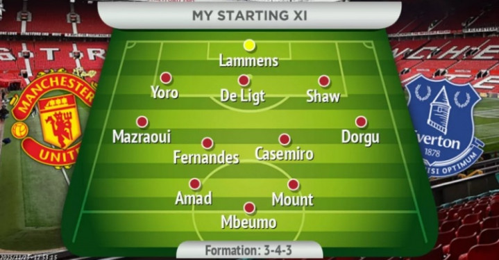 Reporter Jack Flintham: Ramens; Luke Shaw, De Ligt, Yoro; Dolgu, Casemiro, B Fee, Mazrawi; Mount, Ahmed, Mbemo