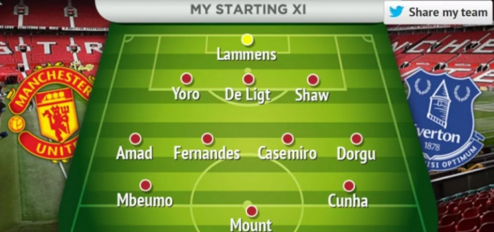 Reporter Steven Railston: Ramens; Luke Shaw, De Ligt, Yoro; Dolgu, Casemiro, B Fe, Amad; Cunha, Mbemo, Mount