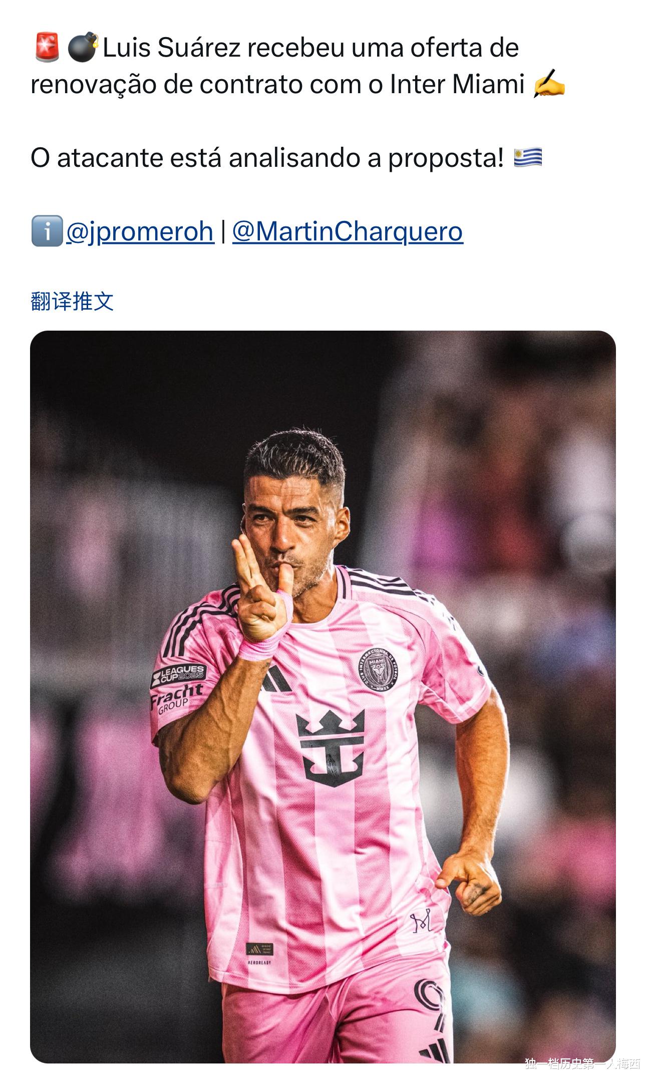 October 3. According to joint reports from reporters such as jpromeroh, MartinCharquero, Suarez has received an official invitation to renew his contract from Miami International. Suarez did not agree immediately, but needed to evaluate before making a decision.