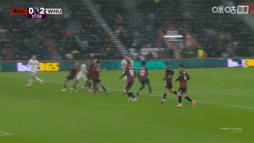 In the 35th minute, West Ham United headed the ball from the right into the penalty area. Wilson stopped the ball on his chest and then turned around and scored with his left foot! Bournemouth 0-2 West Ham United ↓
