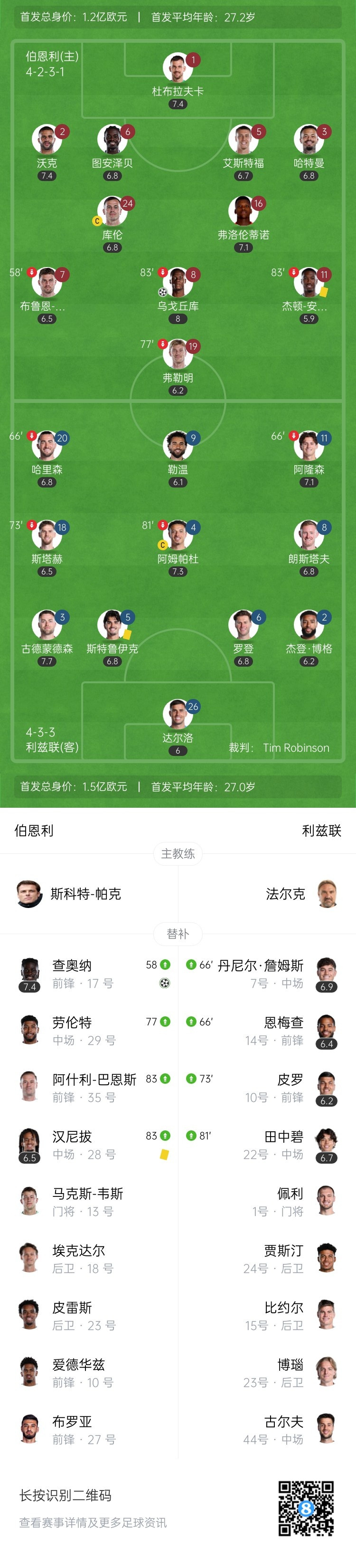 [Both sides’ starting lineup and substitution information]