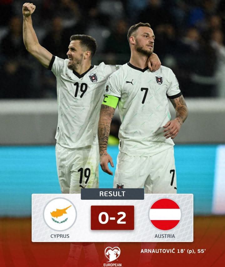 The game was played at home in Cyprus, but the rhythm was completely controlled by Austria after the opening. With stronger overall strength and the high-pressure pressing system emphasized by Rangnick, the visiting team took the initiative early and continued to attack the opponent's hinterland.
