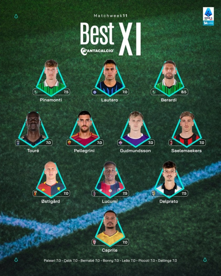 Serie A s official best team of the 11th round: Lautaro and S56 lead, Pellegrini is included