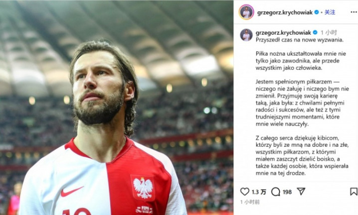 October 27th 35-year-old Polish midfielder Krychowiak posted a message on social media today, officially announcing his retirement.