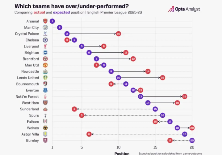 In short, the standings only present part of the truth, and the data model pieces together the complete picture. As the season pattern begins to emerge, the 2025-26 Premier League expected standings provide fans with a unique perspective on teams that exceed expectations and those that fall short of expectations.