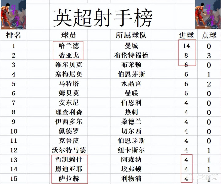 In terms of the scorer list, although Harland missed a point today, he still scored a goal in the end and continued to top the list with 14 goals. Thiago scored twice, surpassing Semenho by 2 goals and ranking second alone, 6 goals behind Haaland at the top. Welbeck, Semenho and Matta tied for third place with 6 goals. Salah was unable to score, but he still managed to squeeze into the top ten with 4 goals from Richarlison, Dzekielesh and others.