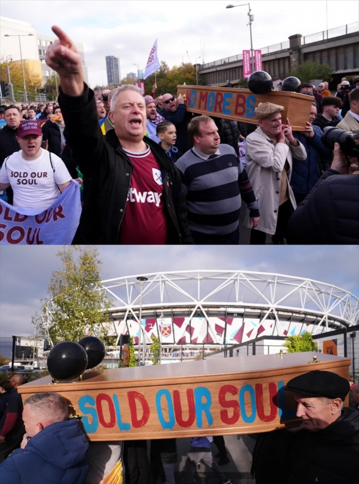 November 9 According to the "Sun" report, before the game against Burnley, thousands of players gathered in front of the London Bowl to protest against the owners of West Ham United. Some fans even carried coffins to protest, with the words "Sold our souls", "No longer tolerate BS (West Ham United chairman David Sullivan and vice-chairman Karen Brady)" and so on.
