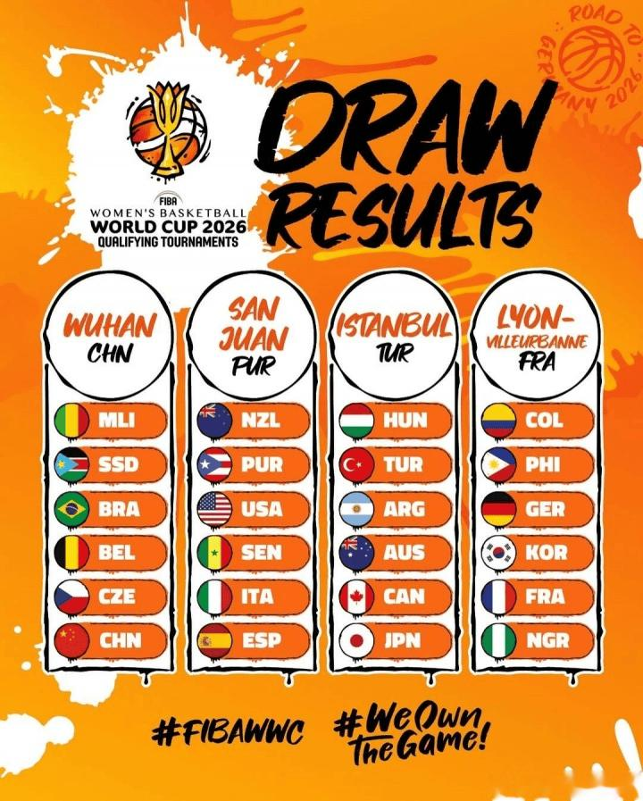 Hupu, October 8th, FIBA officially announced the draw results of the 2026 Women's Basketball World Cup qualifiers. China is in Group A with Belgium, Brazil, Czech Republic, Mali and South Sudan.