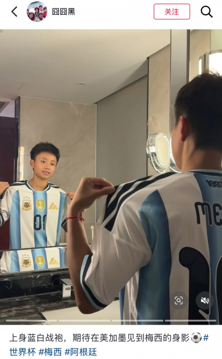 Zhang Linyan wrote on social media: "Wearing a blue and white jersey, I look forward to seeing Messi in the United States, Canada and Mexico."
