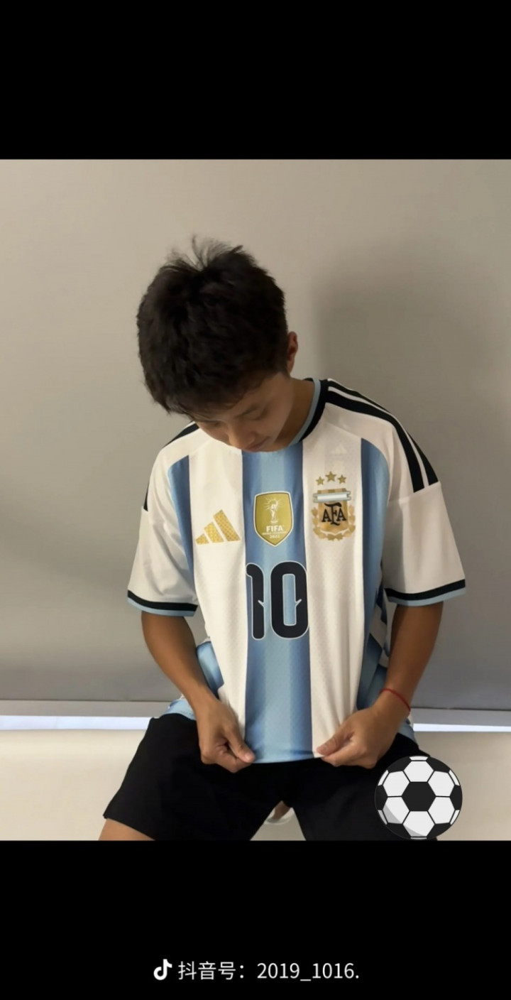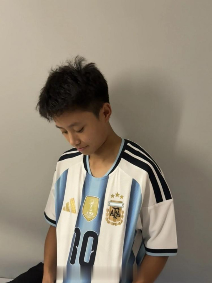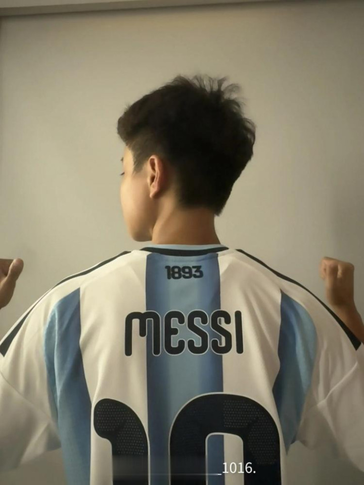 Zhang Linyan, the little fan of the football king, posted photos on social media, wearing the latest Argentine Messi No. 10 jersey